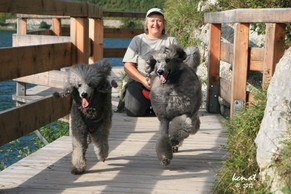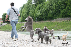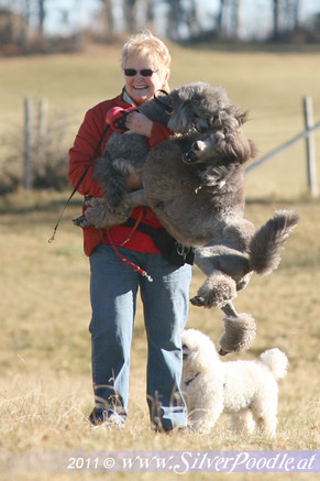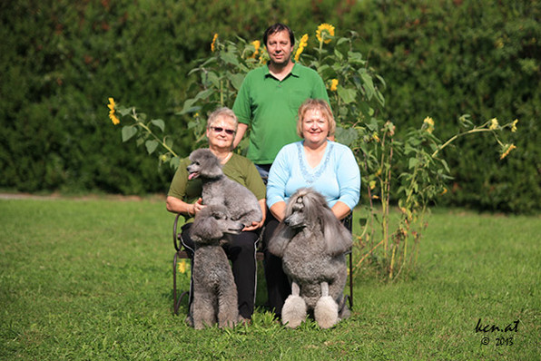 Zur Zeit teilen wir unser Leben mit fünf silbergrauen Großpudel Cara, Bella, Ceasar, Jessi, Angie und einem silbernen Kleinpudel Dori. Davon gehen einige auf Ausstellungen und nur Auserwählte in die Zucht, einige sind einfach 'nur' zum Liebhaben, aber alle sind unsere geliebten Familienmitglieder und leben mit uns im Haus. Die meiste Zeit haben wir aber einfach nur Spaß zusammen, wie normale 'Liebhaber'-Pudel. Gemeinsam ein glückliches Leben zu verbringen ist uns das Allerwichtigste.