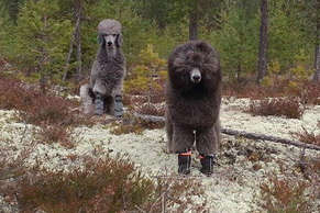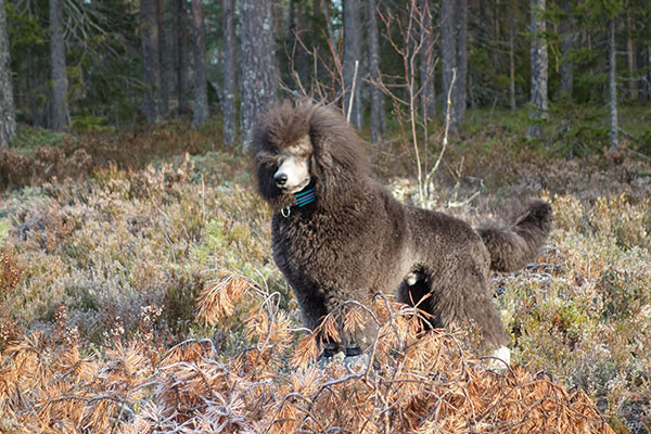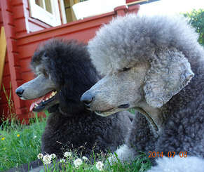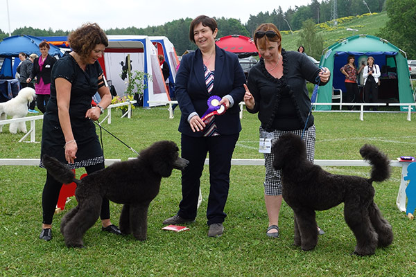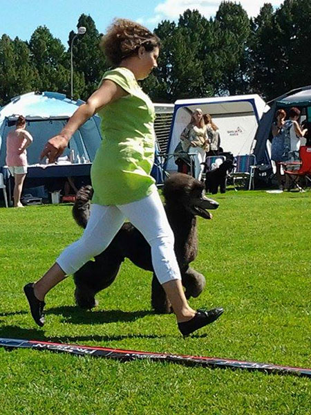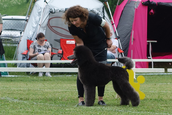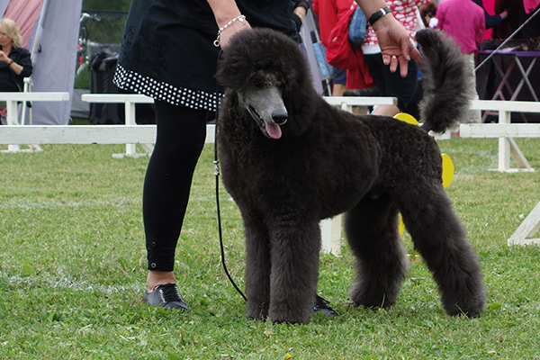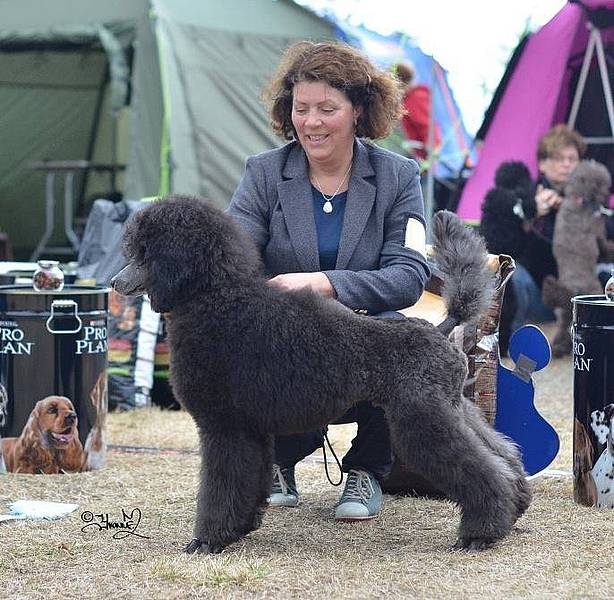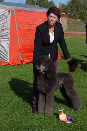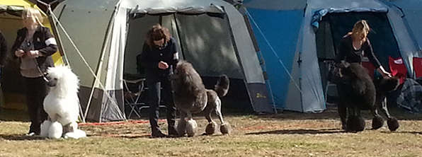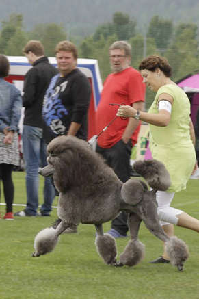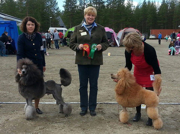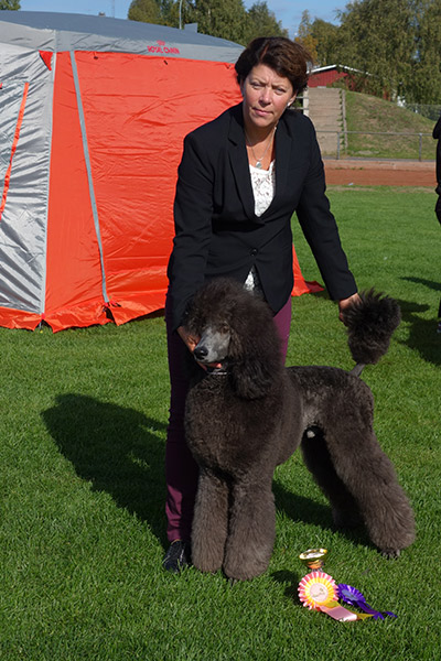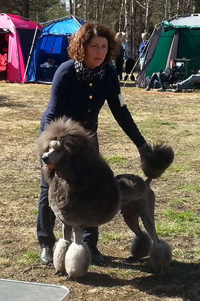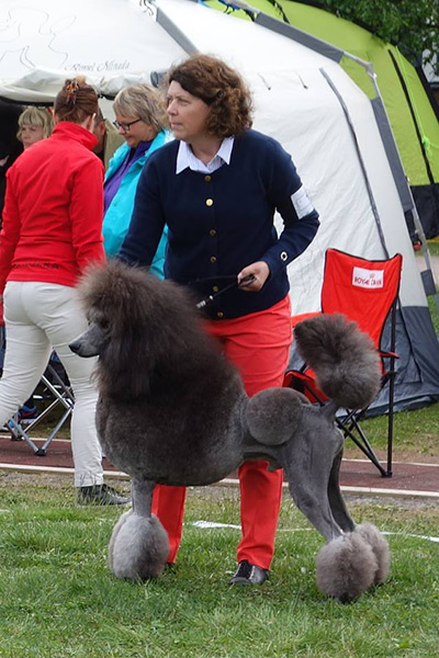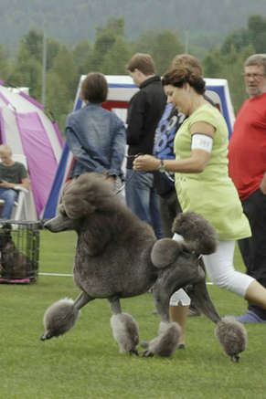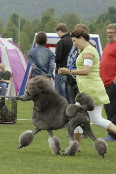 Einen Pudel in Schweden auszustellen ist sehr unterschiedlich zum Rest von FCI-Europa. In Schweden konkurieren alle Farben zusammen in den verschiedenen Klassen, wie die Toypudel. Eine schwedische Anwartschaft zu bekommen ist nicht einfach, besonders für einen jungen Silbernen, dessen Farbe noch nicht fertig aufgehellt ist.