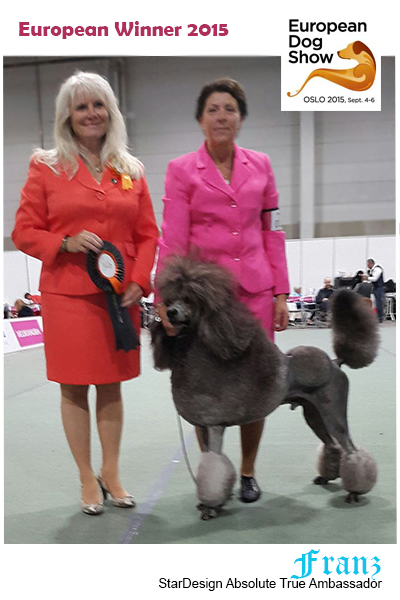 Franz gewinnt die Babyklasse (< 6 M.) auf der schwedischen Pudelnationalausstellung 2014