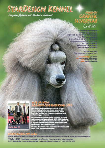 With this ad in German language we wanted to celebrate Cara's successful end of her main show career by winning a Best In Show at Austrian Poodle Club National Specialty
