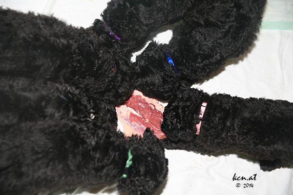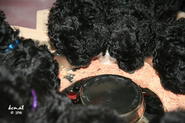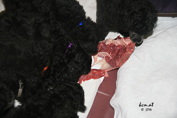 Eating lamb mince meat, porridge, carrots, oils and later some mineral nutrients for today