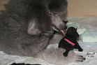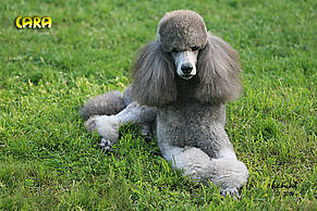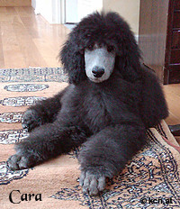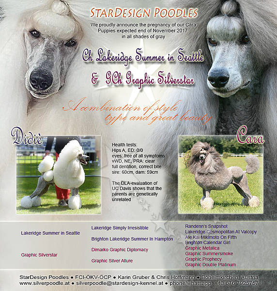 As we heard about this wonderful male living in Italy now, it was like a dream. After searching the perfect match for Cara for a very long time, we felt our quest came to an end. For her second and last litter we tried to find a special male which would bring new blood to silvers. We didn't want to use "just a white", we wanted "that white". His famous pedigree, perfect health tests and genetic-DLA-test was what we were searching for. His owner was so kind and patient with all our requests. We know this is no matter of course today.