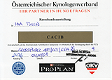 ResCACA can be awarded to each dog and bitch receiving an excellent 2 in intermediate, open and champion class. If the CACA winning dog of the championclass is alread an Austrian Champion, you can use this ResCACA for your championship application. CACIB can be awarded to the best dog and bitch from the following classes: Intermediate, open and champion, who have previously received the title CACA.